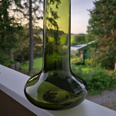 Myydään Timo Sarpanevan Iittalalle suunnittelema i-403 karahvi siniharmaana. Valmistettu vuosina 1956 - 1967. Korkeus 26cm, pohjan halkaisija 7cm.
