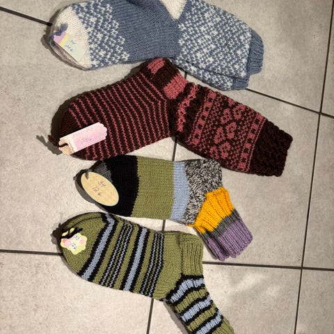 Kauniit villasukat. Koko noin 34-35. Pohjanmitta noin 22 cm.