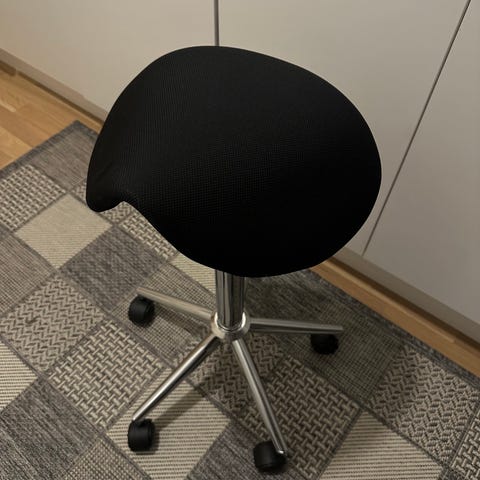 Erittäin hyväkuntoinen korkeussäätöinen satulatuoli.