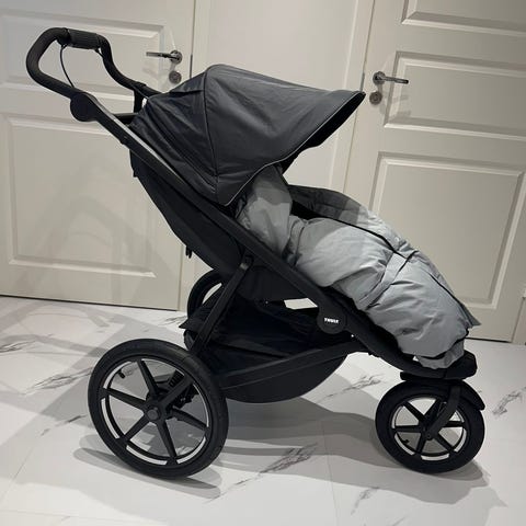 Erittäin siistikuntoiset, ehjät ja toimivat juoksurattaat. Uutena ostettu 2023. Thulen oma sadesuoja ja hyttysverkko mukaan. Aina säilytetty sisällä.