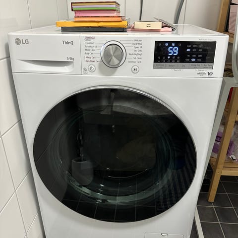 LG thinQ front load washing machine and dryer. 9/6kg capacity