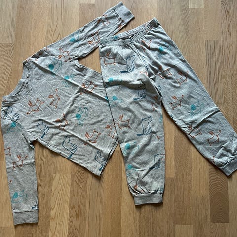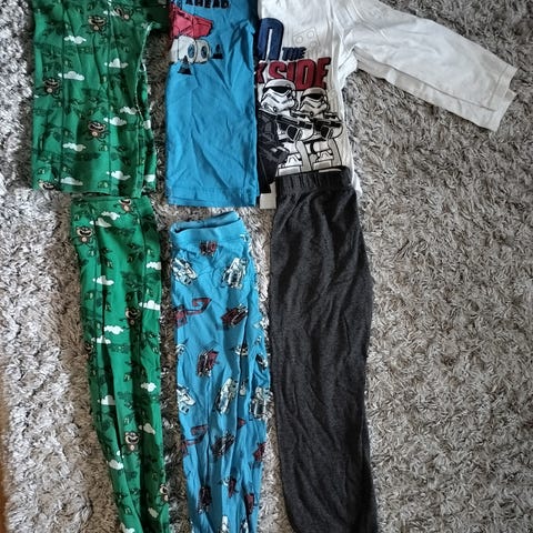 Kaksiosaiset yöasut kokoa 110/116. Paljon käytetty ja värit haalistuneet, valkoisessa paidassa myös hieman tahroja, jotka eivät lähde normaalipesussa, ehkä saa hinkattua pois. Menee kuitenkin vielä Seuraavalle spiderman/supersankarifanille.