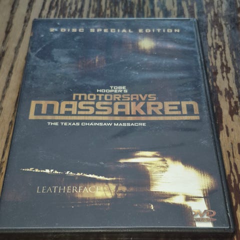 The Texas Chainsaw Massacre tupla-DVD, joka sisältää Texasin moottorisahamurhat -elokuvan. DVD-setti tarjoaa elokuvakokemuksen kotona.