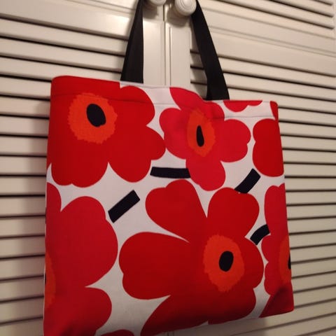 Kaunis kassi! Hopeakimalteisella langalla ommeltu salmiakkikuvio. Kuviossa myös lasihelmiä. Lasihelmet kestää käyttöä ja pesua! Kahvoissa pituutta niin olalla kuin kädessä kuljettamiseen. Kassin koko 36cm pit ja 35cm lev. 10cm leveä pohja. Kangas on 80% puuvillaa ja 20% polyesteri.