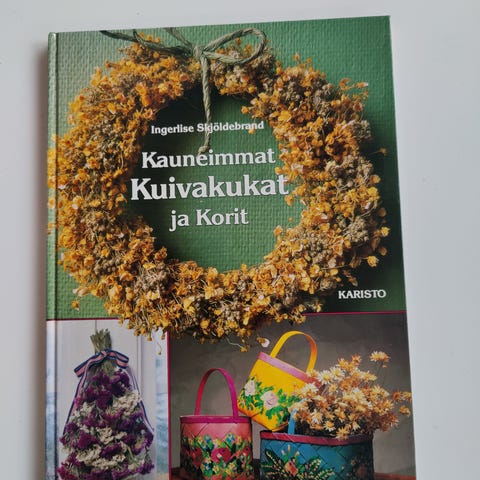 Inga Bergfeldt Kuivakukat kirja, jossa käsitellään kuivakukkien käyttöä ja sommittelua. Kirja sisältää ohjeita ja ideoita kuivakukkien somistamiseen eri tarkoituksiin.