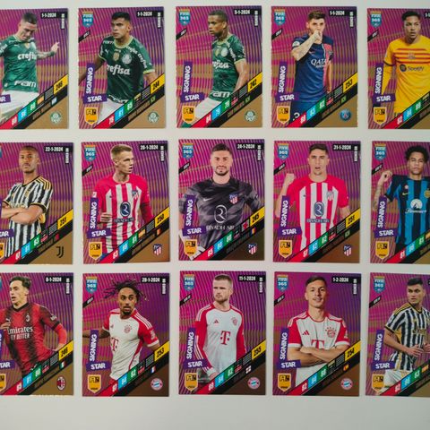 Myydään Paninin Fifa 365 2024 sarjan Star Signing,International Star ja Limited Edition kortit. Yhteensä 118 erilaista korttia.