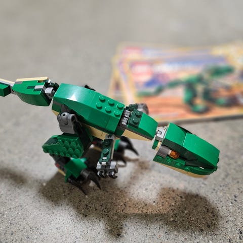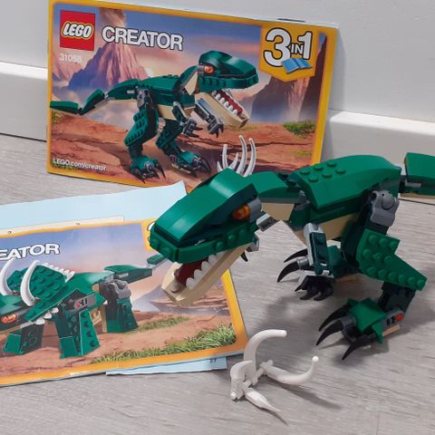 Legoja, joista saa yksi kerrallaan rakennettua kolme erilaista dinosaurusta. Kaikki osat, ohjeet ja laatikko mukana.