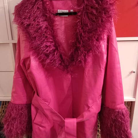 Ihana kerran käytetty Mochyn niittifarkkutakki irrotettavalla turkisvuorilla.