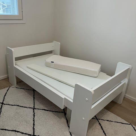 Hyväkuntoinen ja siisti Unipuu lasten jatkopuu-sänky. Pieniä käytönjälkiä on jotka näkyvät kuvissa. Pieni mustekynäpiirrustus sängyn pohjassa. Kissataloudesta. Mukaan saa halutessaan patjan 130x75cm ja patjan jatkopalan 30x75cm.