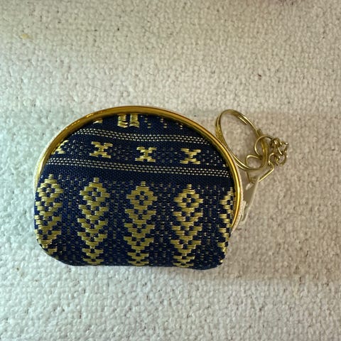 100% puuvillaa, Suomalaista käsityötä. Kukkaron korkeus 11cm ja leveys 11cm. Vuoritettu.