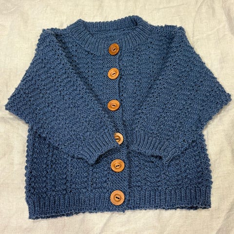 Itse neulotut villatakki ja villahousut koko n.86/92