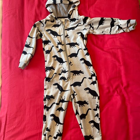 Myydään pehmeä dinohaalari koko 110 merkiltä H&M. Takapuolella kulkee punainen "harja". Nappikiinnitys. Vielä ehjä ja tahraton.