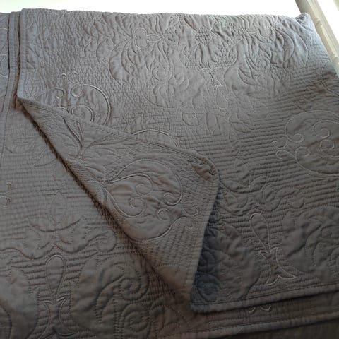 Hyväkuntoinen, vähän käytetty parisängyn päiväpeitto. Rustasta ostettu, Hilva merkkinen, ilmeisesti jo pois valikoimasta. Väri tummanharmaa.