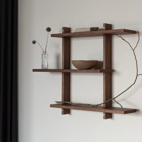 Tebianin seinähylly ihastuttaa veistoksellisella muotoilullaan, mikä tekee siitä upean yksityiskohdan kodin sisustukseen. Valmistettu mustaksi maalatusta puusta.