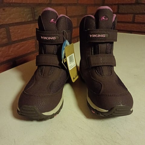 Mukaan saa halutessaan toiset käytetyt Viking talvikengät samaa kokoa. Mustat. Kunto tyydyttävä/hyvä. Vedenpitävät. Lämmin vuori.