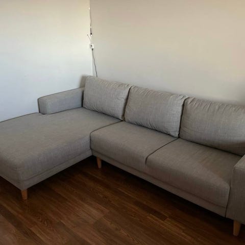This L-shaped sofa is in very good condition and has been professionally cleaned using a furniture-cleaning machine right before listing it for sale.