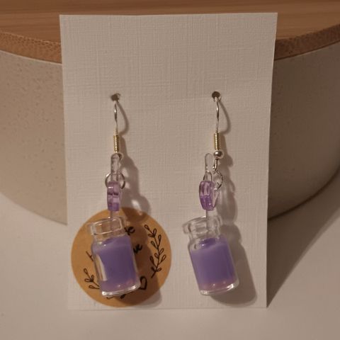 Myydään hyväkuntoiset liilat drinkki korvikset. Koukut ei sisällä nikkeliä.