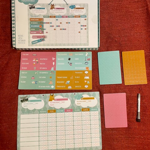 Magneettinen palkintotaulu. Kaikki osat tallella. Yksi magneetti johon voi itse kirjoittaa hiukan taittunut. Ei vaikuta käyttöön mutta havaittavissa. (Sinisen värinen, näkyy kuvassa)