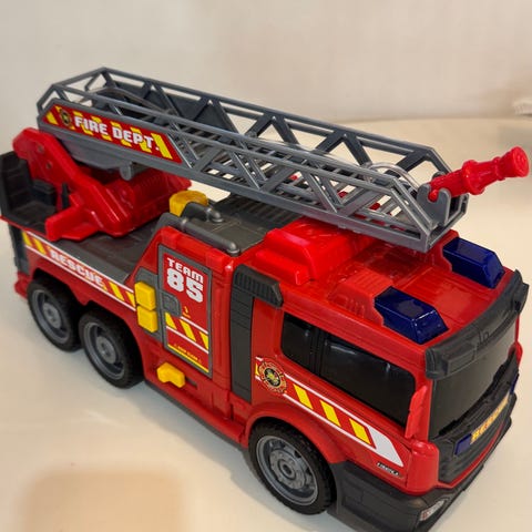 Paloauto, josta saa erilaisia ääniä napeista painamalla. Nouseva ja liikkuva pelastuskori. Mukana palomies Sami. Pohjassa aikuisia helpottava on-off kytkin.
