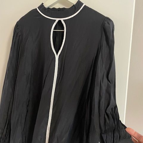Musta pusero, koko 58, joustava polyesteri. Kiitettävä kunto.