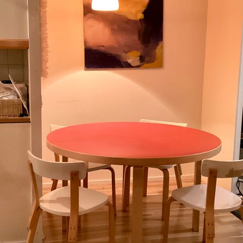 artek – stragula – harvinainen – vintage – suomalainen design – alvar aalto – koivupöytä – retro – 1950-luku – linoleumin korvike – sodanjälkeinen muotoilu – designpöytä – taivutettu koivu – työpöytä – ruokapöytä – klassikkohuonekalu