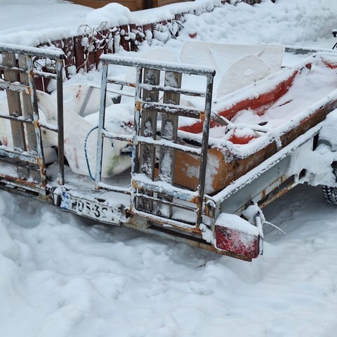 Jämäkkä Kärppä peräkärry kipillä jouten. Jämäkkä kärry, renkaat joutais uusia.