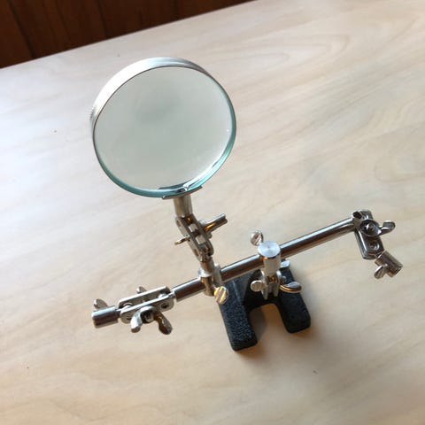 Suurennuslasi säädettävällä jalustalla. Nouto, käteinen.