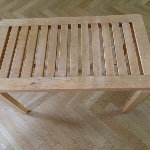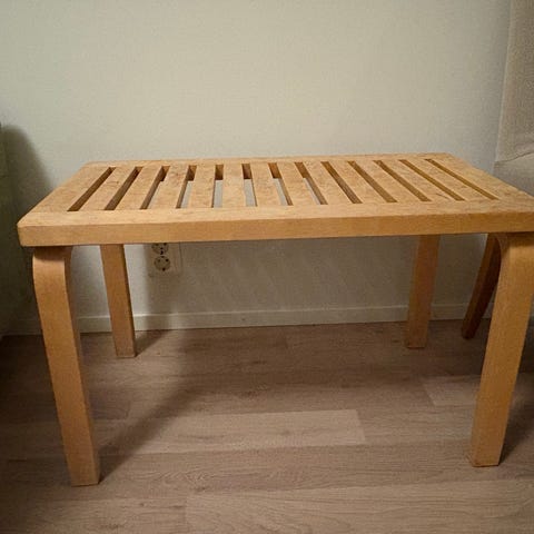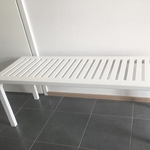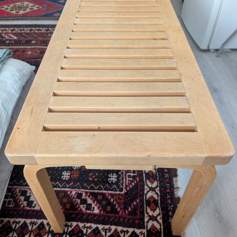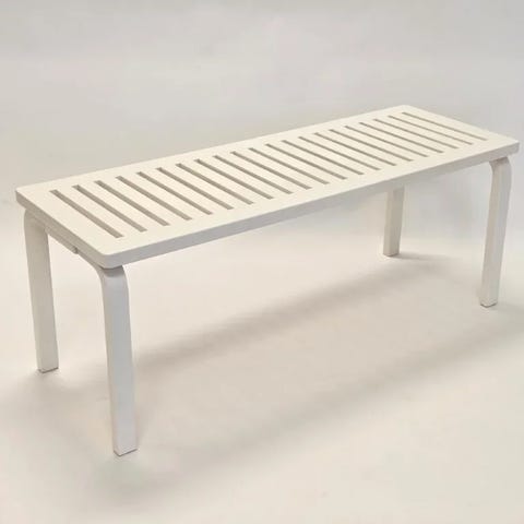 Myynnissä kaksi alkuperäistä Artek 153B -penkkiä valkoisena. Ajaton ja kevyt klassikko, joka toimii niin eteisessä, olohuoneessa kuin makuuhuoneessa. Molemmissa on normaalia käytön jälkeä ja pientä patinaa maalipinnassa, mutta rakenteet ovat tukevat ja käyttövalmiit.