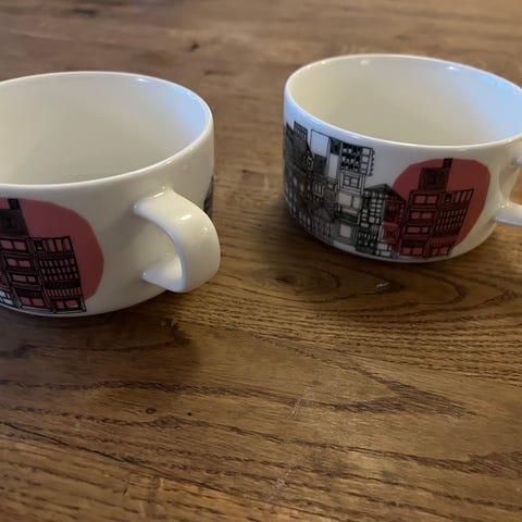 Myyn neljä kappaletta kuvanmukaisia Marimekon mukeja. Kunto täysin virheetön. Yhden mukin vetoisuus 2.5 dl. Hinta 80€ kaikki neljä mukia. Vain nouto Espoo. Maksu käteinen tai Mobilepay.