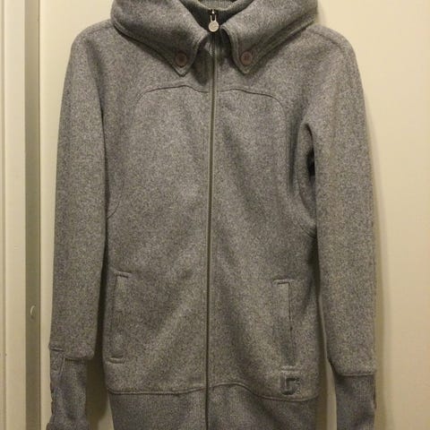 Lämmin hupullinen Burton-takki, koko XS, villasekoitekankaasta, hyvä käytetty kunto. Haku tai postitus maksulla.