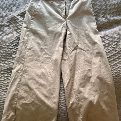 Kappahl koko 42 beige/hieman khakin vihertävän beiget leveälahkeiset housut. Menee M kokoiselle parhaiten. Korkeavyötäröiset. Käyttämättömät. Sovitettu.