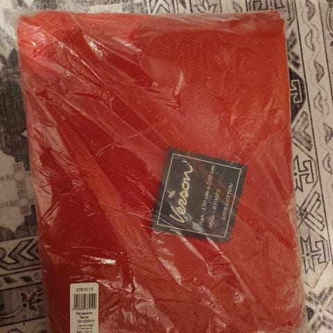 Viininpunainen päiväpeitto sänkyyn, joka on Käyttämätön. Muoveissa, mutta muovit hieman kärsineet, niitä teippailtu. Kissankarvoja voi löytyä.