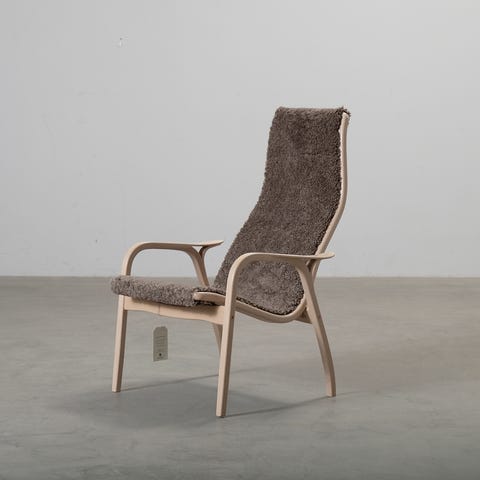Yngve Ekströmin suunnittelema Swedese Lamino nojatuoli 70-luvulta kauniin patinoituneessa vintagekunnossa. Runko - tikki ja tammi, uusi lampaantalja Skandilock Moonlight.