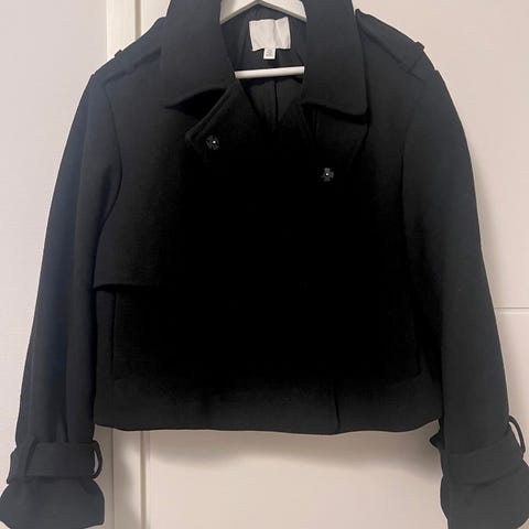 H&M villakangastakki musta, naisten koko 40. Takki on valmistettu villamateriaalista ja siinä on hihansuissa solkiyksityiskohdat. Hyvä kevät- ja syystakki!