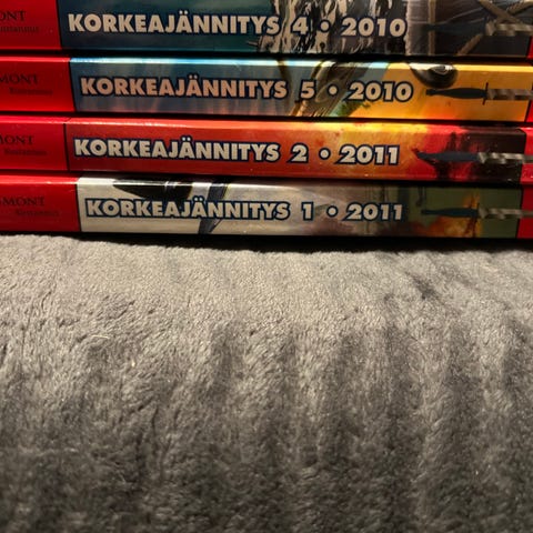 Korkeajännitys -sarjakuvakirjat, sisältäen kaksi osaa: Tulikäske Feuer ja Vapauden Puolesta. Kirjat sisältävät sotateemaisia tarinoita ja sarjakuvia, joissa käsitellään muun muassa sodan käänteitä, taisteluita ja toimintaa eri tilanteissa. Kokoelma tarjoaa neljä rajua toimintatarinaa kummassakin kirjassa ja sotahistoriallisia näkökulmia.