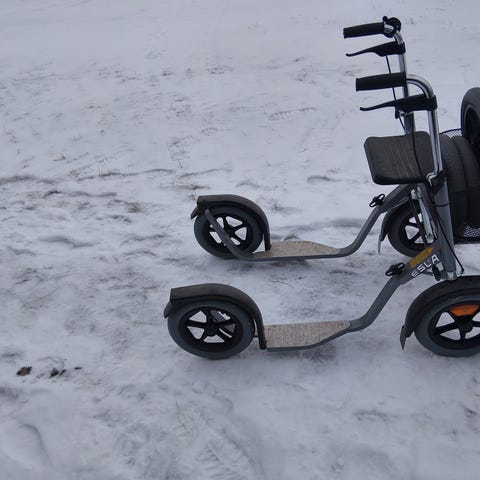 Esla rollaattori, jossa metallirunko ja istuin. Kätevä kori tavaroiden kuljettamiseen. Väri punainen. Kokoontaittuva. Tarpeeton. VAIN HAKU. :-)
