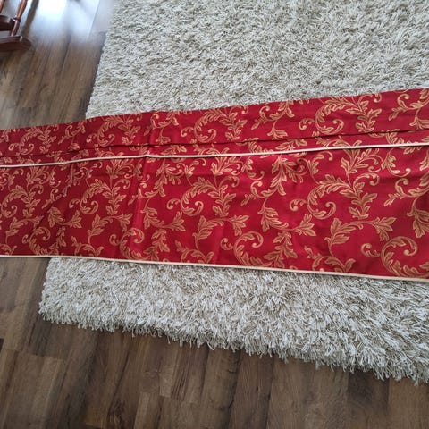 215x45cm. oleva jouluinen verho,joka käy myös pöytäliinaksi tai ommella sohvatyynyn päällisen. Myynnissä myös toinen samanlainen,joka on hieman eri mitoilla.