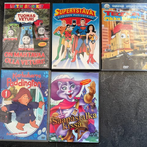 Myydään iso setti lasten DVD-elokuvia. Mukana klassikoita, jouluaihetta, eläinseikkailuja sekä tuttuja hahmoja. Osassa koteloissa hieman käytön jälkeä, mutta levyt ovat toimineet normaalisti.