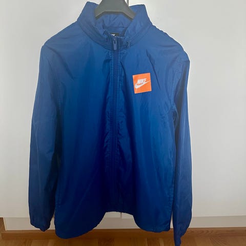 Nike Windbreaker juoksutakki, koko M, musta väri, unisex-malli. Sopii juoksuun ja muuhun urheiluun.