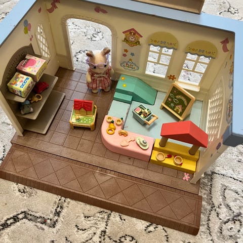 Sylvanian Families lelukauppa ja tavaroita. Leikin jälkiä, mutta edelleen erinomaiset leikkeihin! Vain nouto!