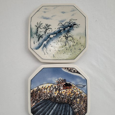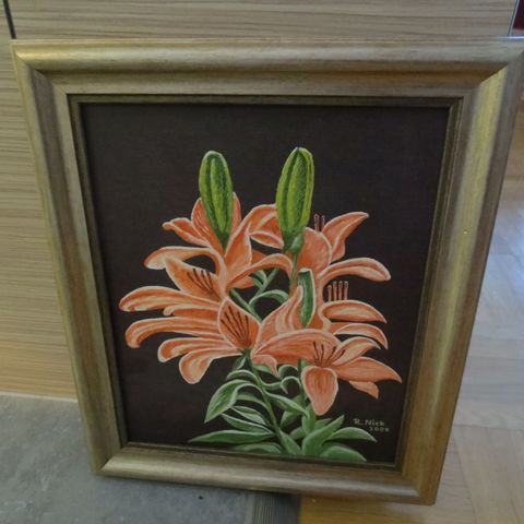 Heljä Liukko-Sundströmin kukkataulu. Takana pidikkeet, jolla saa kiinnitettyä seinään. Arabian laatua.