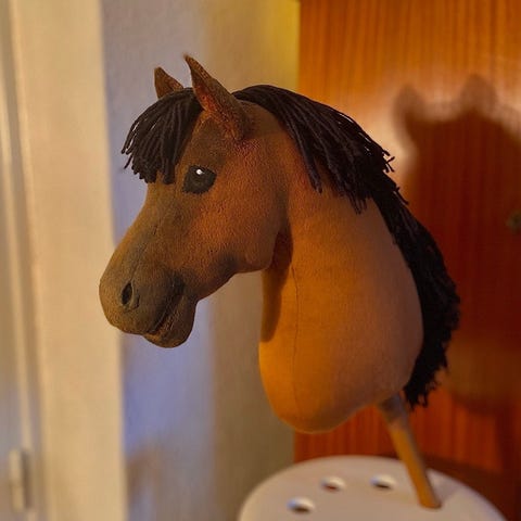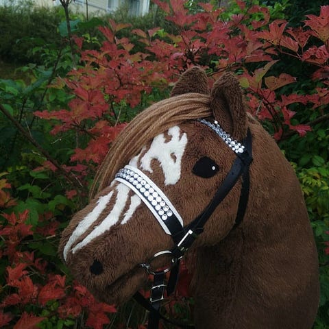 Uniikki keppihevonen jonka on tehnyt Chiaro Hobbyhorses. Tehty Arabianhevoseksi, jolla badgerface-merkki ja toinen silmä hera. Mukaan tulee sininen riimu ja jälkimmäisten kuvien punainen loimi. Myyn myös Kuunvarjon, Mimesishobbyhorses ja Hymyilevänhevosen sekä vähemmän tunnettujen keppihevosia, kysy lisää jos et näe ilmoituksia :)
