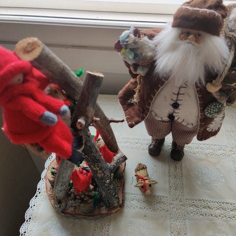 Koristeltu joulukuusi korkeus 60cm,hp.20€, roikkuvat joulukoristeet hp.8€ ja 10 enkelin setti.