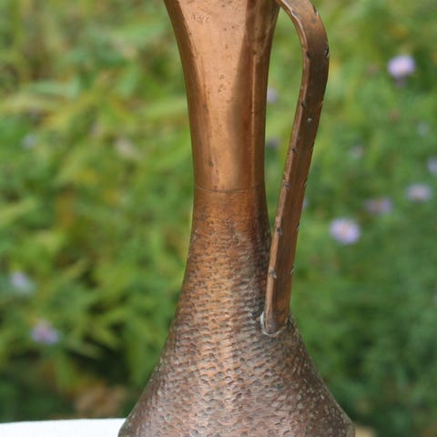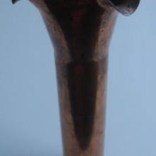 Martti metallin maljakko, kuparia. Kahva ja pohja teak.Korkeus 24 cm.