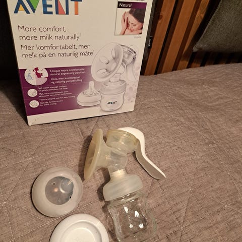Avent manuaalinen rintapumppu ja 4 aventin pulloa. Lisäksi yksi herobility pullo.