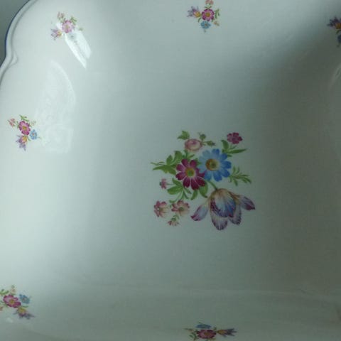 Isommassa punainen raita sisäpuolella. Halkaisija 23cm, korkeus 10cm.