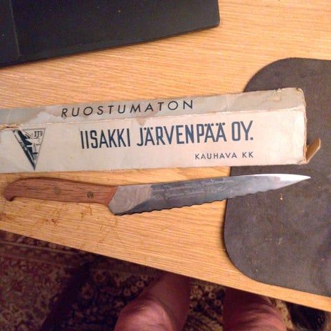 Hieno, särmä, ruostumatonta terästä. Puussa ajan patinaa. Nouto Turku tai Tampere tai postikuluja vastaan voin postittaakin, Toridiili ei valitettavasti toiminnassa.