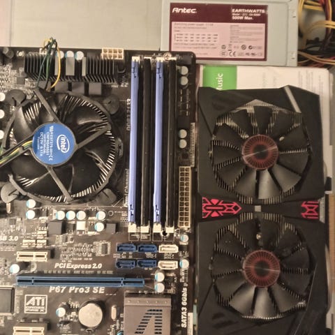 Aikoinaan pelikoneen päivityksestä jääneitä osia. Toimivana laatikkoon laitettu ja siellä olleet usean vuoden.