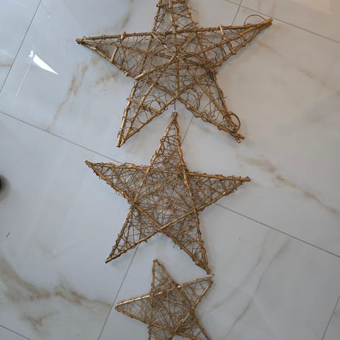 Koristetähti, kullanväristä rottinkia, 35 cm, kuin uusi