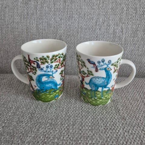 Myydään Iittalan Satumetsä-mukit, 2 kpl. Hyvässä kunnossa, mutta tarroja ei valitettavasti ole kiinni. Hinta yhteensä molemmista. Nouto Töölöstä tai Olarista, voin myös postittaa, kulut ostajalle.